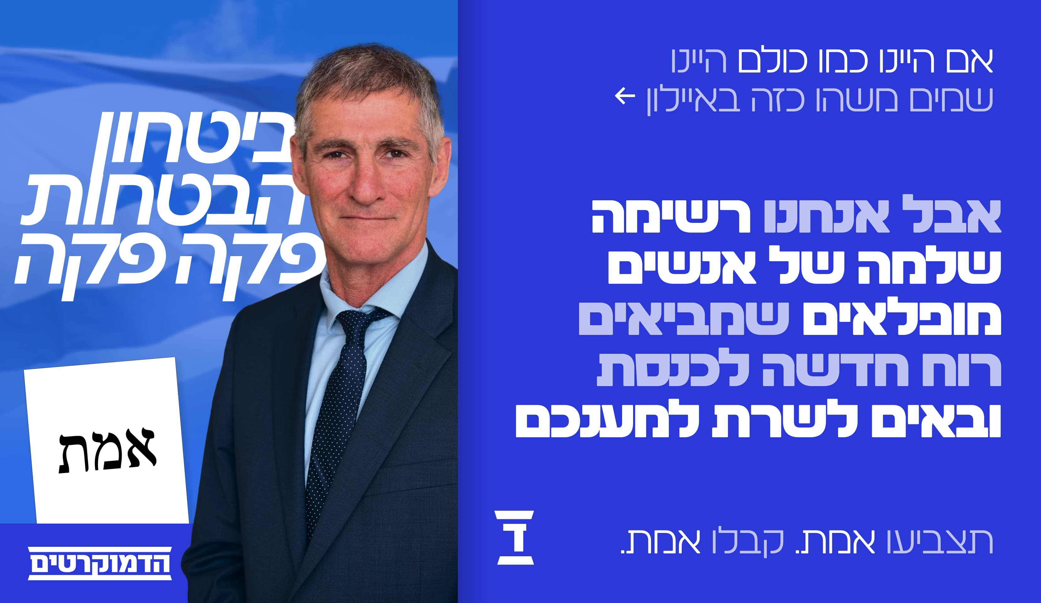 בעיניי, זה צריך להיות בכלל אחד הצירים המרכזיים בקומוניקציות של המפלגה: לא להוסיף עוד רעש ולהצטרף לכאוס, אלא לשדר רוגע וביטחון.